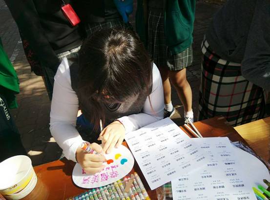 学校星期五下午不上课,学生们会选择各种社团参加社团中的活动。而每周五的下午汉语社团除了一些常规的播放中国电影,更多的是文化体验活动,例如制作扇子、画脸谱等等。有一次学校的汉语社团外出活动是去启明大学孔子学院体验中国文化。在启明大学的孔子学院里面,学生感受了中国茶文化,体验了一次如何沏茶、品茶。而在学校的祝节里,每个社团则需要准备相关的活动让老师们还有其他的学生体验,汉语社团准备了品中国茶、试穿中国传统服装、中国地图拼图游戏、制作中国扇子等等的活动,让学校里的学生还有老师也经历了一次中国文化体验活动。