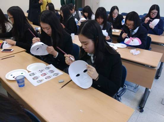 我所在的学校是一所有着52年历史的名为大邱第一女子商业高中的学校。这所学校共有三个年级,每个年级9个班,每个班30人,上汉语课的是高一以及高二学生。我在这里跟两位韩国老师搭档教学,高一年级是较为年轻的陈静垠老师,高二年级是40岁左右的金兑映老师,同时她也是我的生活搭档。高一年级每周有两堂课,一堂课是与搭档老师合作教学,另一堂课她独自授课,因此在与老师共同教学的课上,搭档老师将课堂的时间都留给我,她只是充当翻译的作用,这给了我极大的发挥空间。高二年级每周只有一堂我与搭档老师共同上课的汉语课,所以我们共同完成教学。