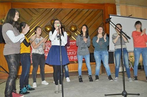 接下来学生表演的中国诗朗诵、民歌《茉莉花》、汉语对话还有汉语志愿者老师带来的中国歌曲等接连上演,全场充满着热闹的气氛。特别是关于中保文化的幽默汉语对话惹得全场观众笑声连连。最后,由师生共同改编和演唱的中文保语版的歌曲《朋友》深深打动了在场的观众。