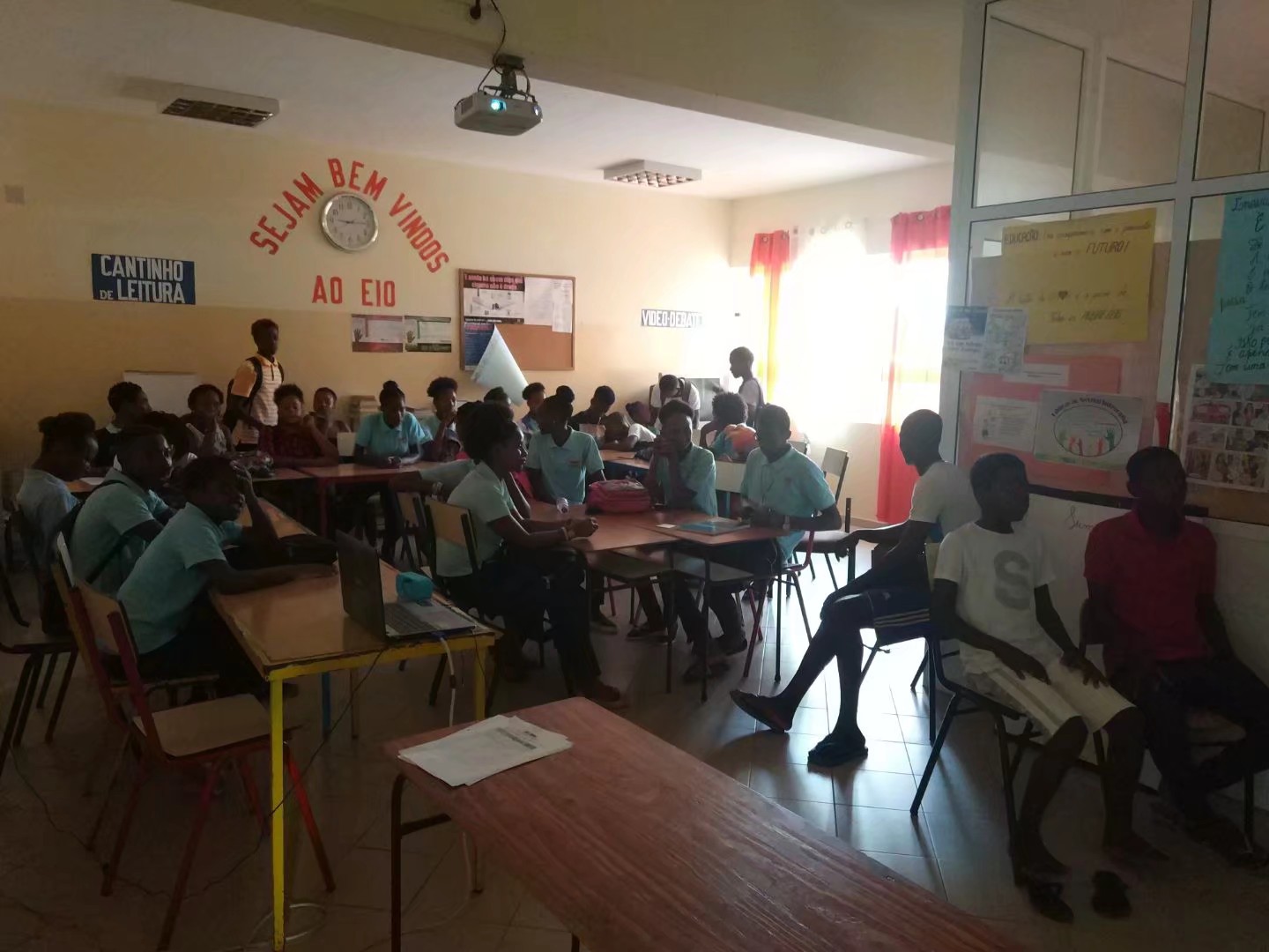 由于汉语课在这里都是选修课,因此前期我们的工作主要是走访各校进行招生宣传、与校方协商上课等事宜。这一切结束后,开始正式上课。这里学生的汉语都是零基础,对中国的印象是bonita(美丽)、grande(大)、muito desenvolvido(高度发达)、kungfu(功夫)、Jackie chan(成龙)、Jet lee(李连杰),其他一无所知。来到这里最大的障碍就是语言不通,大多数的学生英语不好,主要讲葡萄牙语和克里奥尔语,我们又不会说葡语和克里奥尔语,因此沟通起来特别困难,大多数的时候都是借助谷歌翻译或者是让班上个别英语好的同学进行翻译。每次在上课的时候互动效果也不是很好,尤其是对话的时候,让某个人充当“A”,另一个人充当“B”,学生会跟着念“A/B”,念英语也有人跟着念,甚至有时候说葡语,还有人跟着念葡语。上课的过程中有玩手机的、说话的、打闹的等等,但是让他们安静也都会配合你,学生上课也是经常拖拖拉拉的,上课上到一半有学生陆陆续续地来也是常有的事。另外,这里的学生很喜欢中国风的歌曲、舞蹈和功夫,每次给他们播放相关的内容,学生都会跟着视频一起舞动起来,模仿得像模像样。