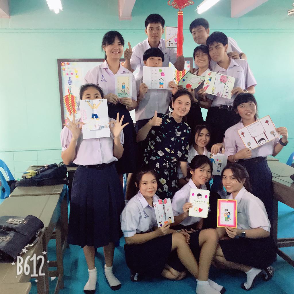 泰国的学生非常活泼也非常调皮,有很多的志愿者都在课堂上被气哭过,建议学弟学妹们上第一节课时可以适当讲解下课堂规则,以后慢慢强化,不能过于放松,也不能过于死板。比如,在每个班选出一个汉语负责人,如果遇到学校的活动或者其他的事情不能来上课,可以发消息跟老师请假,让老师提前有准备;规定上课时间不能随便上洗手间,需要得到老师的同意;迟到不能超过10分钟,会扣分等,这样对以后的课堂管理会很有帮助。最后,泰国的学校经常会举办各种活动,在各种活动中,你会发现泰国学生的手工真的很棒,同时也能够体验佛教文化带来的新鲜感。