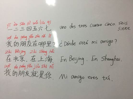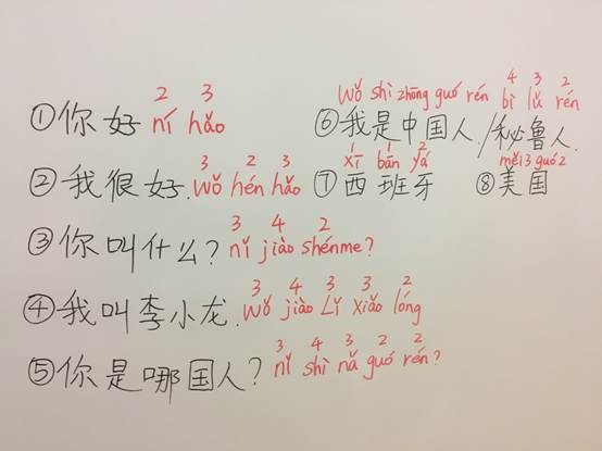 汉语拼音有四个声调,一般说“一声平,二声扬,三声拐弯,四声降”。我们在教授汉语拼音的时候,可以用1、2、3、4分别表示声调的第一声,第二声,第三声,第四声。利用数字可以进行听音辨调训练,比如老师念“你”,写上拼音ni,不写声调,让学生辨别声调,学生听声调,会告诉老师声调是3。再比如,老师读“是”,学生说出声调4。当学生读不准声调的时候,老师还可以在生词拼音上标出数字,这样既能训练学生的音准,又能顺便复习数字。以上做法的前提是初级学生已经掌握拼音,能够拼读出来。另外,每次在教生词的时候,老师可以给生词标上序号,数字与生词一一对应。老师说数字,学生读出生词,老师读生词,学生说对应的数字。这种练习方法尤其对读音相近的字和词来说,可以帮助学生更好地分辨读音。比如“百Bai3”和“白Bai2”,老师读拼音,学生说出对应的字的序号。如果学生说错了,老师继续把生词对应的数字说出来,给学生示范正确读音,纠正学生发音。这样做的好处是“一箭三雕”,学习拼音和生词的同时,又顺便复习数字。然后在练习句型的时候,例如“我家在北京”,老师可以把字词的顺序打乱,我(1),北京(2),在(3),家(4),让学生组句排序,学生说出正确句子的数字排列顺序。