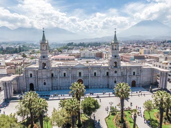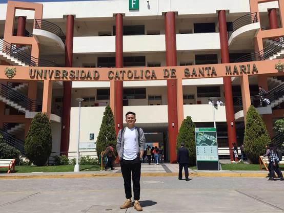 2019年3月初,作为一名新任汉语教师志愿者,我从广东外语外贸大学来到了秘鲁圣玛利亚天主教大学孔子学院任教,孔院位于秘鲁第二大城市——阿雷基帕,阿雷基帕位于安第斯山脉2325米高的一处地方,城内建筑多用白色火山凝灰岩建造,这座美丽的城市也叫“白城”,曾经是西班牙的殖民地,当地很多建筑都富有西班牙特色。2000年12月,联合国教科文组织将阿雷基帕列为世界遗产。