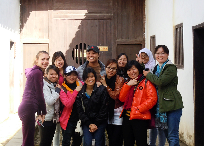 2012年11月15日晚,中文学院教工及汉语国际教育硕士孔子学院奖学金生从学校出发,赴井冈山开展党日和文化考察活动。11月16日凌晨4点到达江西省吉安市,大家不顾长途奔波的劳累,随即坐上大巴赶往井冈山。井冈山已进入冬天,非常寒冷,时值大雾缭绕,还下着濛濛细雨,但并没有浇灭大家的热情。文化考察期间,参观了大井毛泽东、朱德同志旧居、上井红军造币厂、小井红军医院,并到井冈山烈士陵园缅怀先烈;游览了地势险峻的黄洋界哨口、百竹园、水口瀑布、五指峰,在整个参观考察过程中,全体奖学金生认真听取讲解,仔细驻足观看。面对眼前那一幅幅珍贵的历史照片,一件件历经风雨的历史实物,大家都感慨万千,心潮澎湃。百竹园、水口瀑布、五指峰等自然景观的一山一水,一草一木都让奖学金生们大叹江山如此多娇。