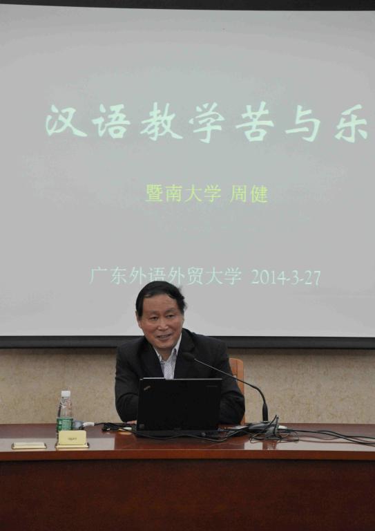 暨南大学的周健教授为2013级汉硕学生带来了一场特别的讲座,周健教授通过简单而具体的实例与学生分享了“汉语教学的苦与乐”。讲座由汉语国际教育中心主任彭淑莉主持。