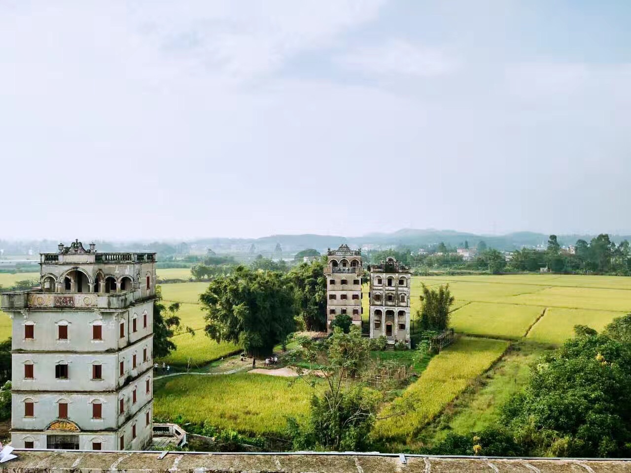 终于我们一行人到达了开平。说到开平就不得不提到碉楼。开平碉楼,以其不一般的特色,在世界的同类建筑中独树一帜;一个多世纪过去了,这一座座碉楼早已历经风雨,饱受战火的洗礼,铅华尽去,有的傲立田野,有的只剩下断墙残垣一片,还有那斑驳可见的痕迹。它曾经保护过这一方的土地,守卫过这一方的乡人。开平分布于15个镇的一千八百多座碉楼,成为中国的侨乡标志,成为城市最靓的名片,走向人们,走进世界文化遗产行列。