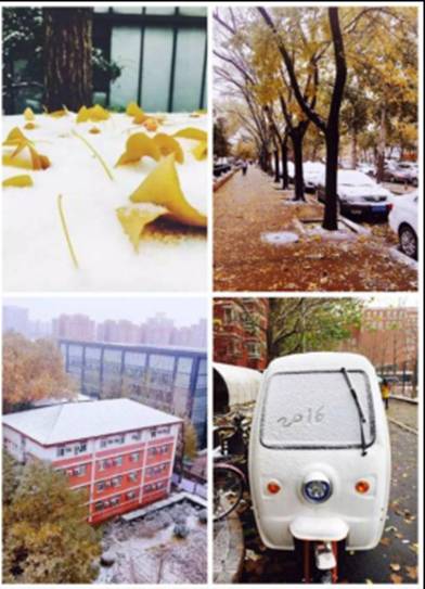 在培训期间每一个天气的小变化都让我们惊喜,在忙碌的培训课程中为了我们这一段旅途增添一番北京的味道。11月14日是立冬后第一个月圆日。一起培训的同学赏北京的月,看还在广外的同学们晒广州的月,颇有深秋异地共揽一轮明月之感。后来11月21日,我们迎来的来北京今年的初雪!雪不算大,但总归是雪,化走了多日的雾霾。培训也已是尾声,一种复杂的情绪在志愿者中间蔓延,既是离别的忧愁,又是归去的期待。