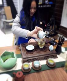 走进梧桐书院,空气中飘来阵阵茶香,顿觉神清气爽,一堂生动有趣的茶艺课在等待着我们。选茗、择水、烹茶技术、茶具艺术,优雅温婉的茶艺老师为我们娓娓道来,并做了细致的演示,我们也纷纷上台,体会茶艺的内蕴,品味浓郁的茶香。