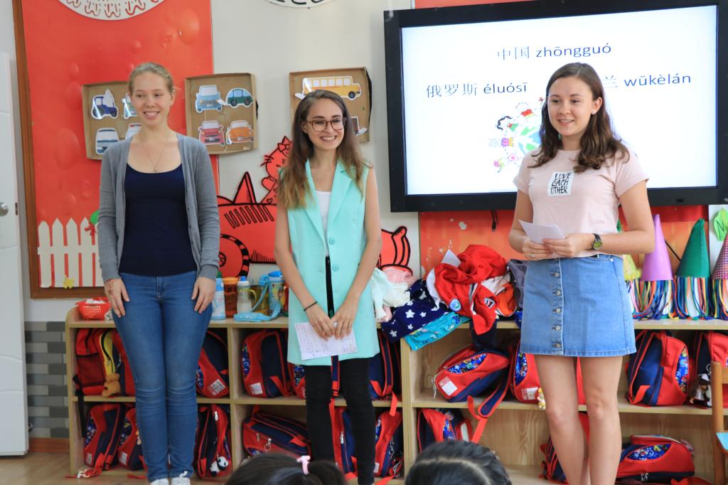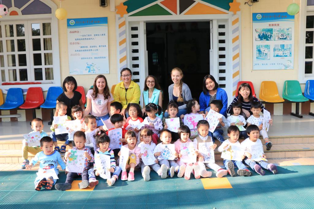 为增进孩子们对外国文化的认识,10月31日下午,我院副教授、汉语国际教育硕士生指导教师王媛媛带领乌克兰的李茗然、俄罗斯的果娅娜和维柯三名留学生前往广外幼儿园小二班举行以“新年快乐”为主题、以“乌克兰与俄罗斯文化体验之美术”为主线的义教活动。