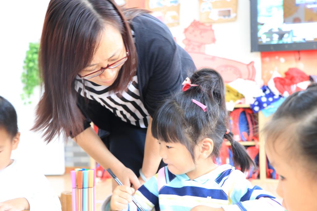 广外幼儿园园长曾晓杰与孩子们一起感受课堂氛围