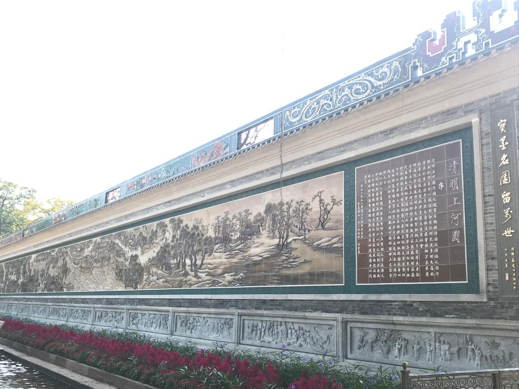 园中陶塑、瓷塑、砖雕、灰塑、石刻、木雕等艺术精品琳琅满目。惊世之作,当数已列入大世界吉尼斯之最的瓷逆浮雕《清明上河图》。
