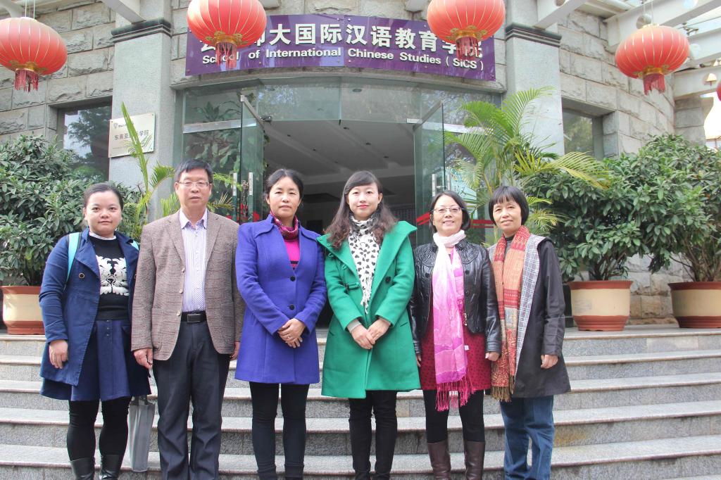 2014年11月14日-16日我院汉语国际教育中心主任彭淑莉老师率领汉硕中心导师郑庆君教授、刘萍副教授、杨慧君老师赴云南师范大学、云南民族大学调研交流。