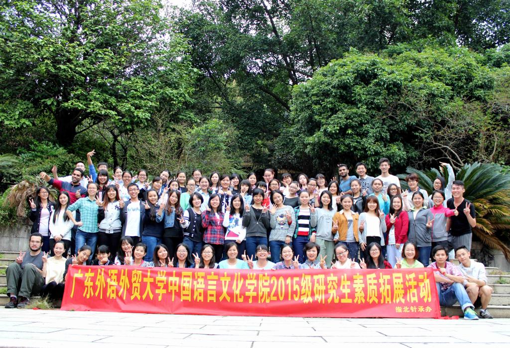 单丝不成线,独木难成林,为了提高同学们的团队协作能力,达到不断认识自我,实现自我,超越自我的目标。2015年11月1日上午中国语言文化学院组织了2015级中外研究生前往番禺区大夫山进行户外素质拓展活动。