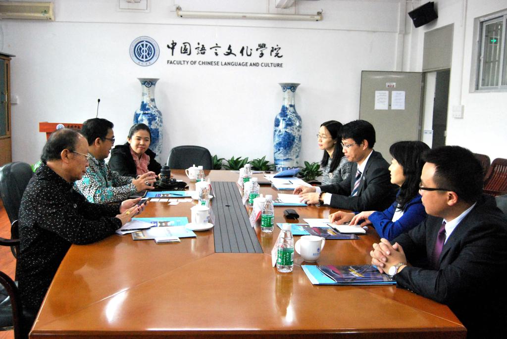 会面伊始,智星大学校长沈牧平首先对广外的热情接待表示了感谢,随后简单介绍了智星大学的情况。智星大学是第一所获得印尼政府承认办学资质的私立大学,目前开设了三个语言专业,其中中文系在校生200多人,毕业生100多人;另外三年制旅游管理专业,汉语课是该专业学生的必修课。沈牧平表示目前该校汉语方面师资短缺,并且随着中印两国经济贸易等方面合作的加深,越来越多的印尼企业需要更多的汉语人才,沈牧平提出,希望广外能在汉语师资方面给予帮助。