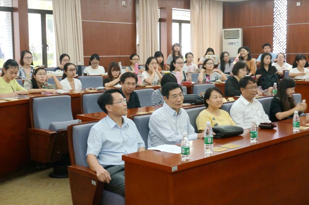讲座伊始,中文学院伍方斐院长致辞,并介绍周教授的研究领域及学术成果;随后,范静静书记向周教授赠送纪念品。