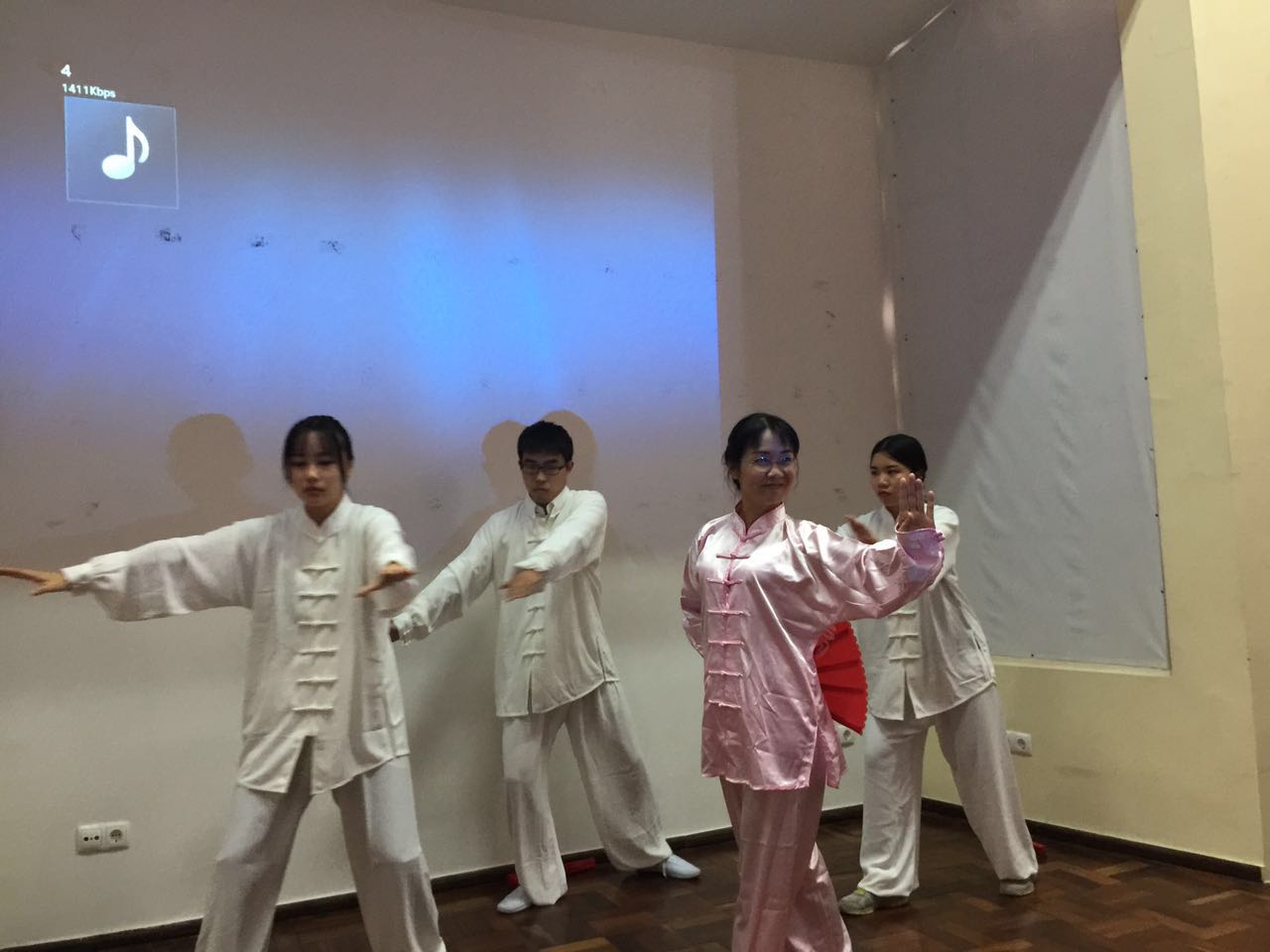 中方教师与志愿者和佛得角大学艺术团分别表演了拳扇结合的太极功夫和唱伴舞的佛得角传统打击乐。刚柔并济的中国武术与节奏鲜明热情洋溢的非洲鼓点,展示了中非文化的和谐交融,互动说唱把揭牌典礼的气氛推向了高潮。