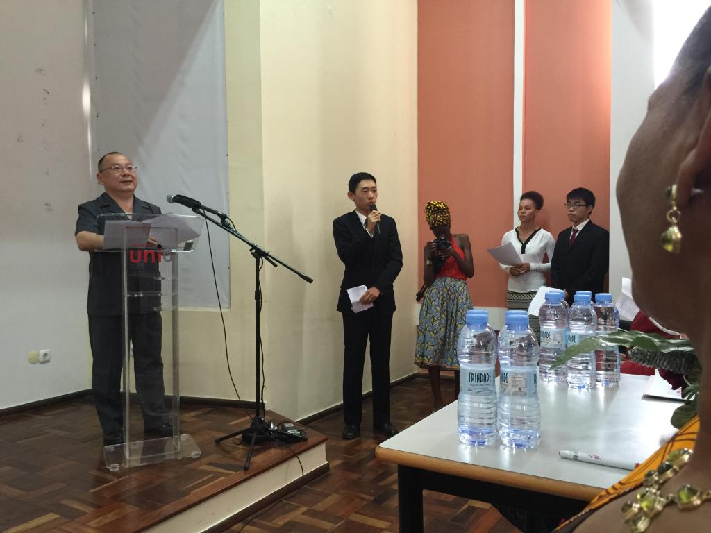 仪式分为“致辞”、“介绍”、“文艺表演”、“揭牌祝酒”四个部分。校长纳西门托在欢迎致辞中首先感谢了在场嘉宾的光临,然后详细地描述了她与外方院长参加刚刚结束的第十届孔子学院大会及广东外语外贸大学孔子学院联席会议的感受,高度评价中国会议的安排;随后又介绍了孔子学院建院的过程及对佛得角大学的重要意义。中国驻佛得角大使杜小丛充分肯定了孔子学院作为2015中佛人文交流的重要成果所发挥的作用,并畅谈了未来两国开展更多人文交流的筹划。