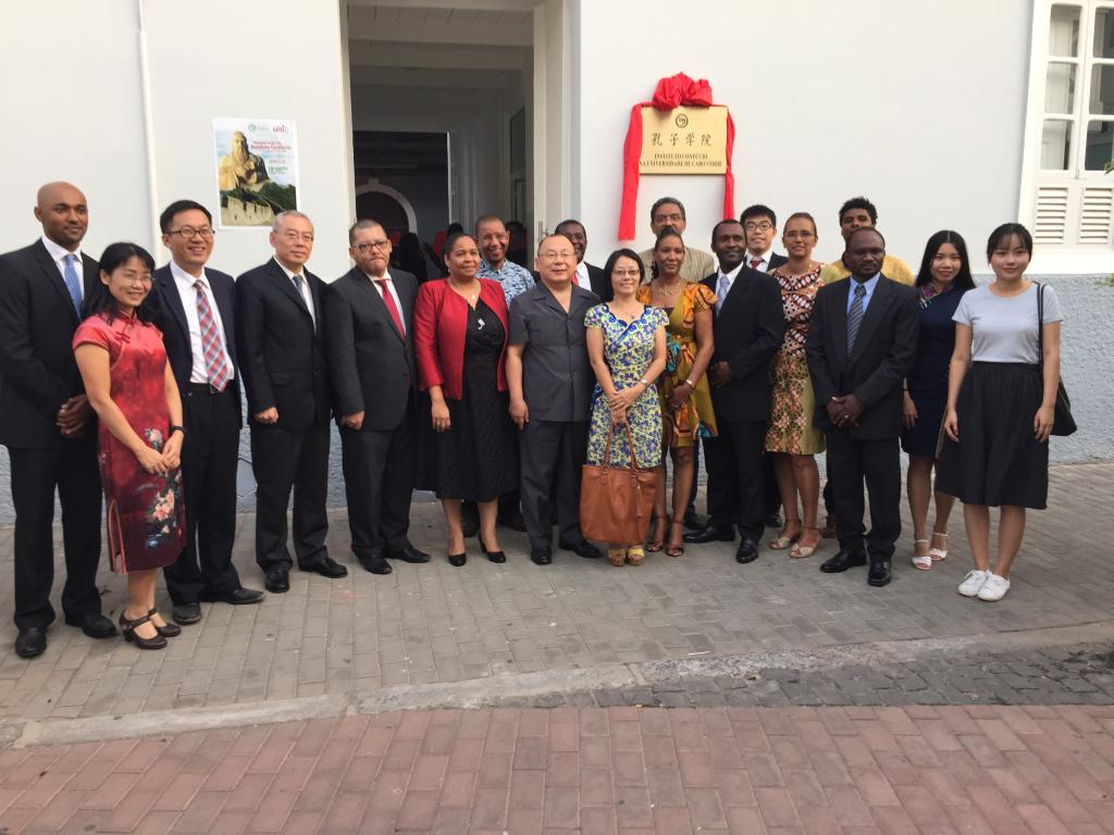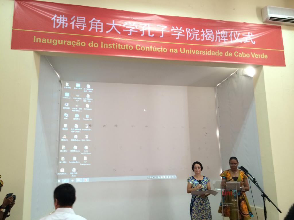当地时间2015年12月18日下午三时(中国时间19日00:00),佛得角大学孔子学院在佛得角首都普拉亚举行了揭牌仪式。该孔子学院为佛得角第一所孔子学院,由佛得角大学与孔子学院总部/国家汉办合作建立,中方合作院校是广东外语外贸大学。中国驻佛得角大使杜小丛、政务参赞尚思远、商务参赞宋波、佛得角高等教育科学创新部高教司长科雷拉、佛中友协会长何塞、佛得角外交部代表巴博萨大使、佛得角大学校长纳西门托、孔子学院中方院长郑庆君、外方院长阿尔明达以及佛得角大学师生代表、中国在佛八家中资机构代表、华人华侨代表等近80人出席了揭牌仪式。