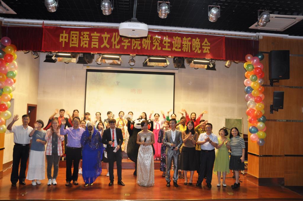 秋风送爽,20日晚七点,中国语言文化学院研究生迎新晚会在广外附属小学礼堂如期举行,中国语言文化学院李和民书记、李江副书记、魏慧斌副院长、汉硕中心于屏方主任、严修鸿教授、张向荣教授、郝红艳教授、王媛媛副教授、汉硕中心办公室秘书吴传娇老师以及当日活动的主人公--2016级研究生新生参加了此次晚会。