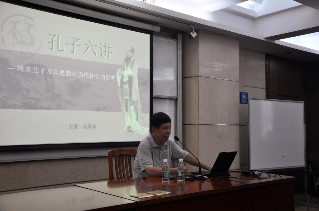 吴老师讲演脉络清晰,从以下几个方面进行了阐述:一、轴心时代众多思想家的一员;二、中华优秀传统文化的保护人;三、中国古代最伟大的教育家;四、孔子的天命观与儒家的道义担当;五、孔子创立的儒家仁学对当代的影响;六、孔子的崇礼对当代人际交际的影响。