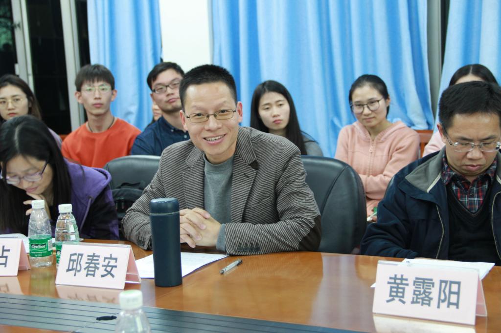 最后,邱春安主任作总结发言,指出这一次沙龙虽然是小范围的活动,但是大家在严教授的讲座中,学到了真知、体悟了做研究的乐趣、感受到了学者的风范,是一次成功的学术活动。邱主任结合自己在英国访学的经验,鼓励大家不要忽视自己的想法,如果有什么感想、体会,可以结合材料进一步深化,还可以请教相关专家、老师,把问题深化,这样就可以从细小的问题中找到有价值的结论。他指出,沙龙在轻松、活泼,却不失严谨的气氛下持续了将近3个小时,这是超过预期的,也证明了严老师的魅力、我们方言文化的魅力。同时,他也非常感谢在座的各位老师和同学,期待下次语言学沙龙大家再会!