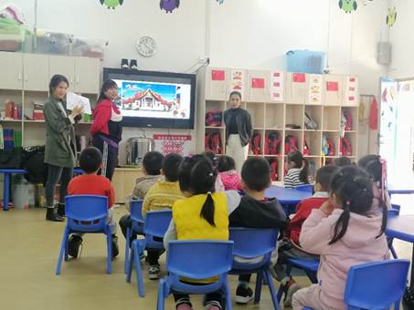 两位来自日本的汉硕留学生被分配到幼儿园大二班进行义教。王媛媛老师作为本次义教活动的指导教师参与到了日本留学生组织的课堂教学活动中。日本同学的教学活动分两个环节。一是由长野匡介绍日本的季节和每个季节的代表景色,二是由镰田隆希教小朋友折纸。