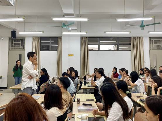 在《研究设计:方法与材料》的讲座中,周小兵教授先是听取了几位学生的选题分享,以诙谐幽默的方式引导学生去思考选题的可行性与不足之处,由此指出学生选题的难点主要是缺乏问题导向、选题不够聚焦或是可操作性较弱。