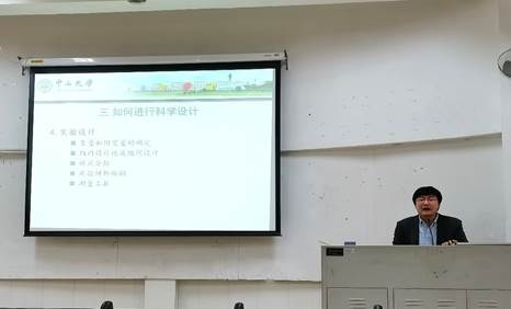 紧接着,洪教授讲述了如何进行科学设计。洪教授利用清晰简洁的框架图让同学们了解实证研究的分类,同时表示论文中的文献研究不同于文献综述。通过研究案例以及与同学互动的方式讲解自变量和因变量的概念,并详细讲解每一个教学实验研究的流程。