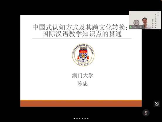2022年4月28日,澳门大学人文学院中文系副教授、博士生导师陈忠老师,在腾讯会议上为我校21级汉硕学生做了一场题为《中国式认知方式及其跨文化转换:国际汉语教学知识点的贯通》的精彩讲座。讲座由中文学院陈恩维教授主持。