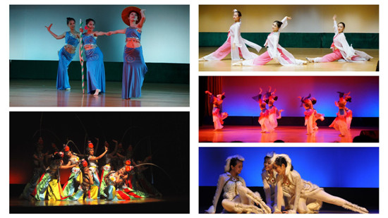 我校舞蹈队伍呈上具有少数民族风情的《月狐吟》、《邵多丽》,融入京剧、川剧元素的《俏花旦》和意境深邃带着浓浓古风的《国风》《墨韵》。来自傣族的妙龄少女穿着束腰拽地的舞裙侧折下腰,轻盈婀娜;头戴近一米高头饰的花旦甩头挪移,矫健舒展。水袖轻舞,空中腾跃,刚柔并济的表演让人目不暇接,为表演划上完满的句号。