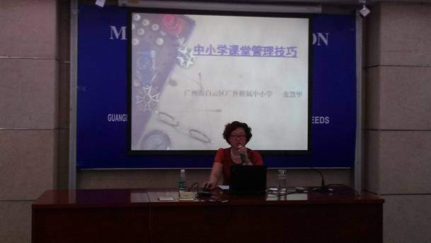 2015年 6月18日下午,应汉硕中心的邀请,广外附属中小学学生处主任张慧华老师在六教B103会议室为汉硕同学们作了题为“中小学课堂管理技巧”的学术报告。