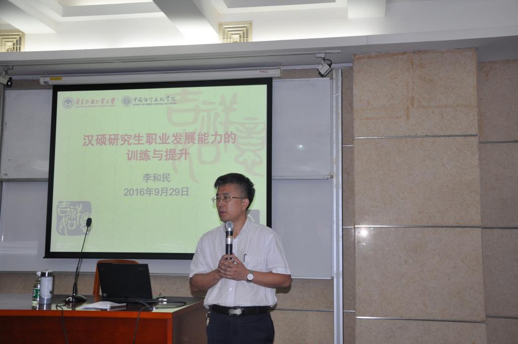 9月29日下午3点,汉硕研究生职业发展能力的训练与提升讲座在广外北校区B教103室进行。本次讲座由中国语言文化学院李和民书记主讲,由广外汉语国际教育中心主任于屏方教授主持,2016级汉语国际教育硕士参加了此次讲座。