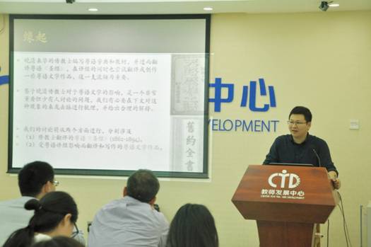 11月9日下午15时,中山大学的姚达兑副教授在我校教师发展中心105室,以“晚清粤语《圣经》与粤语文学”为主题,为中国语言文化学院汉硕2017级学生带来了一场知识的盛宴。此次讲座由中国语言文化学院的左岩副教授主持,陈恩维教授出席本次讲座。