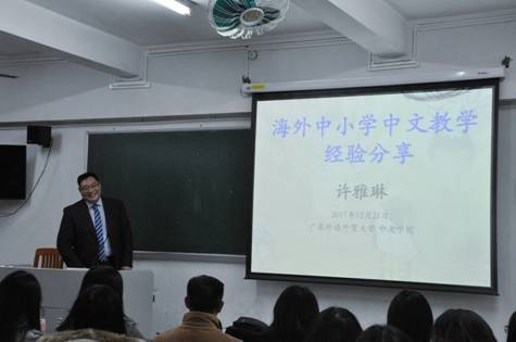 2017年12月22日晚上,汉硕中心邀请资深汉语教学专家许雅琳老师为大家分享了他的海外中小学中文教学经验。十五年来,许老师先后任教于杭州外国语学校(Hangzhou InternationalSchool)、智利国际学校(International School Nidode Aguilas)、韩国国际学校(KoreaInternational School),具有丰富的教学管理经验和出色的跨文化交际能力。