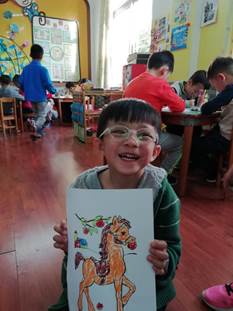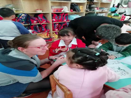 最后长野匡同学和镰田隆希同学赠送给每个小朋友一只他们亲手折的驯鹿折纸礼物,并让小朋友自己画上驯鹿的眼睛、鼻子和嘴巴,小朋友们非常开心。日本同学的义教活动结束后,义教老师和小朋友们合影留念。