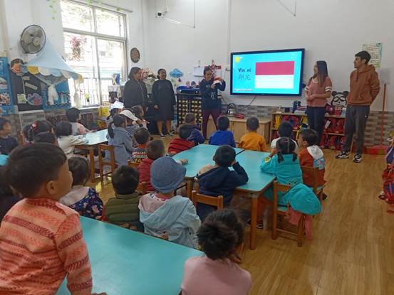 老师教小朋友们认识印尼国旗