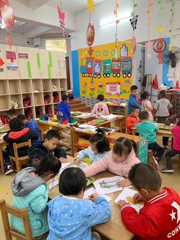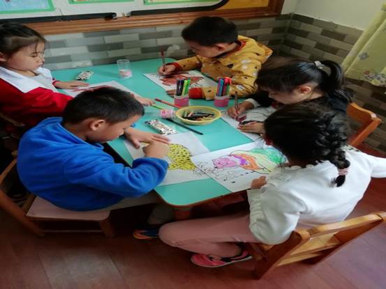 小朋友们认真涂色