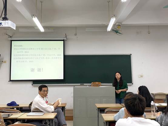 最后,在学生分享与提问环节,同学们结合系列讲座的内容与自身的研究发现或兴趣点进行提问,周小兵教授都一一做出解答。针对学生出现的论文选题可操作性较弱,没有问题导向性等问题,周教授提醒同学们在论文选题上要学会聚焦,通过缩小研究范围、提炼创新点等方式规避选题太大、太空的情况。