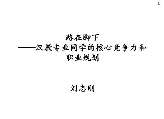 讲座开始后,刘志刚老师首先介绍了其本人的汉语国际教育求学与就业经历,在求学与就业的过程中经历的一系列困难和挫折,以及在人生十字路口做出的种种选择,人生重要关节点对自身的重要改变等等,这对于汉硕学生的未来职业规划有很大的借鉴意义。