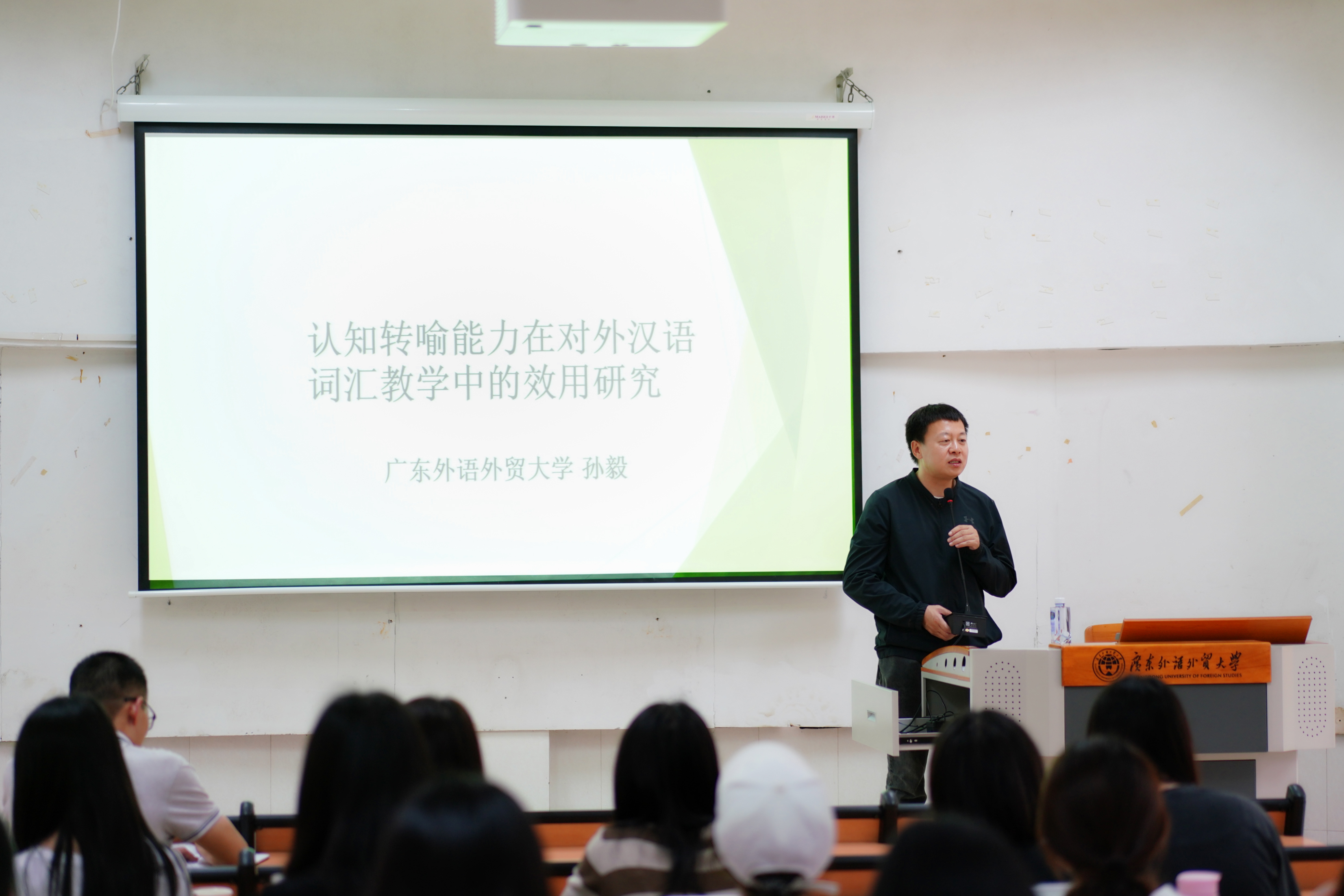 为加深同学们对转喻能力的理解,拓宽对外汉语教学研究视野,2023年4月14日,由广东外语外贸大学云山杰出学者、《广东外语外贸大学学报》主编孙毅教授主讲的《认知转喻能力在对外汉语词汇教学中的效用研究》讲座在七教110顺利举行。2022级全体汉硕学生参加此次讲座。