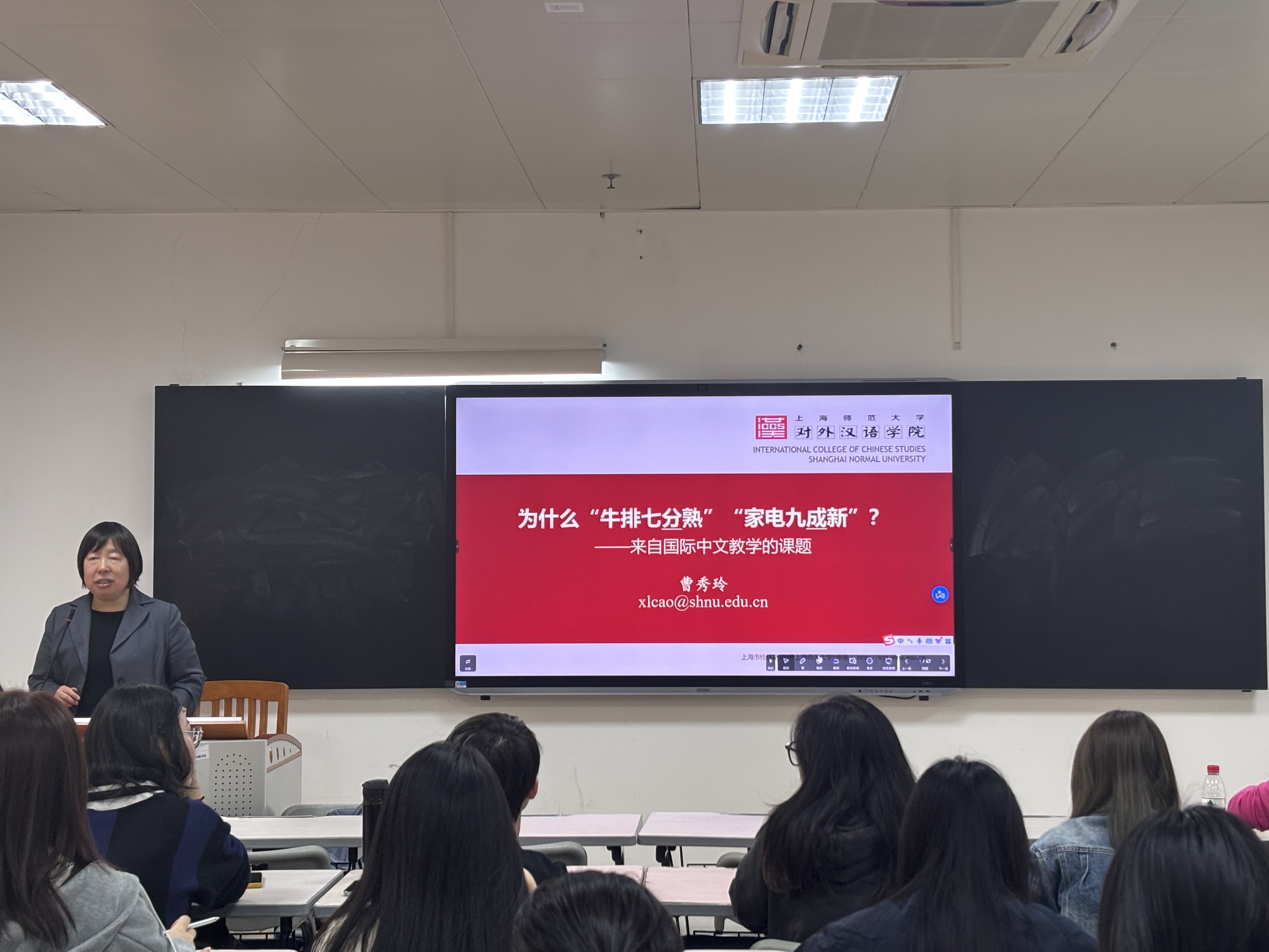 2024年12月5日下午15:00,由广东外语外贸大学中国语言文化学院举办的学术讲座在白云山校区第七教学楼313教室举行。本次讲座的主题是“为什么‘牛排七分熟’‘家电九成新’?——来自国际中文课堂的课题”,由上海师范大学曹秀玲教授主讲,我院彭淑莉副教授主持。中文学院24级汉硕学生参与了本次讲座。