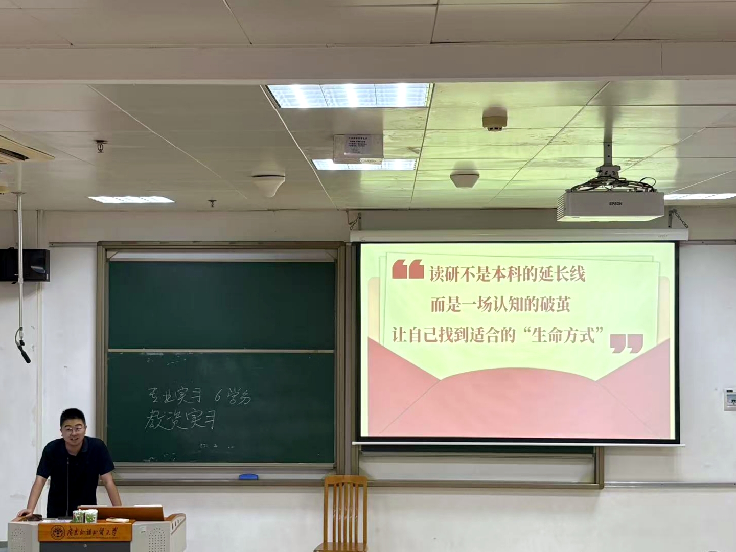 2025级辅导员刘力行老师则以“真实学习,真切生活”为主题,与新生探讨读研的意义与规划。