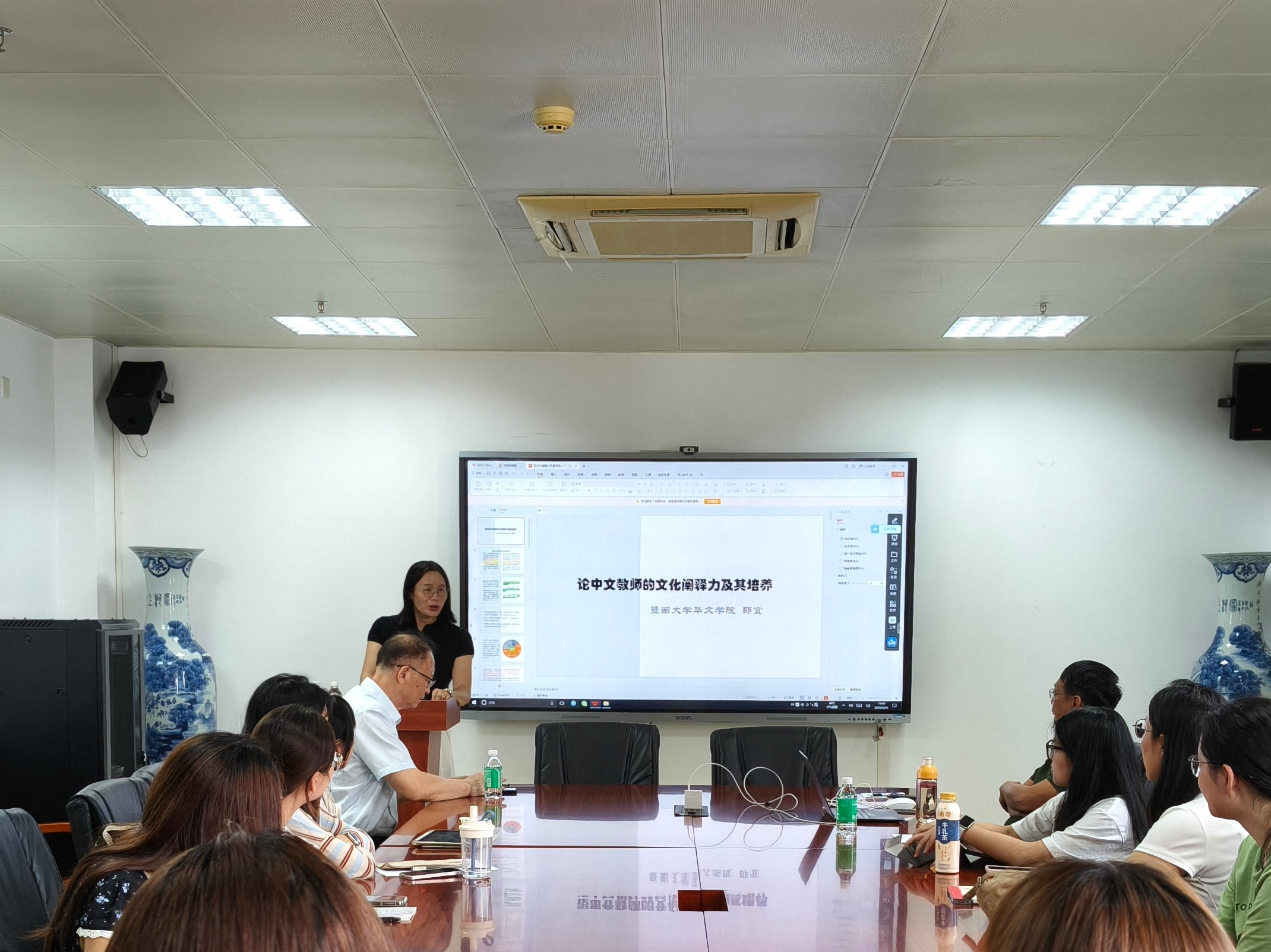 2025925日下午,由广东外语外贸大学中国语言文化学院举办的学术讲座“论文化阐释力及其培养”在白云山校区第七教学楼407会议室举行,本次讲座由暨南大学中文学院邵宜教授主讲,我院于屏方教授和严修鸿教授主持。