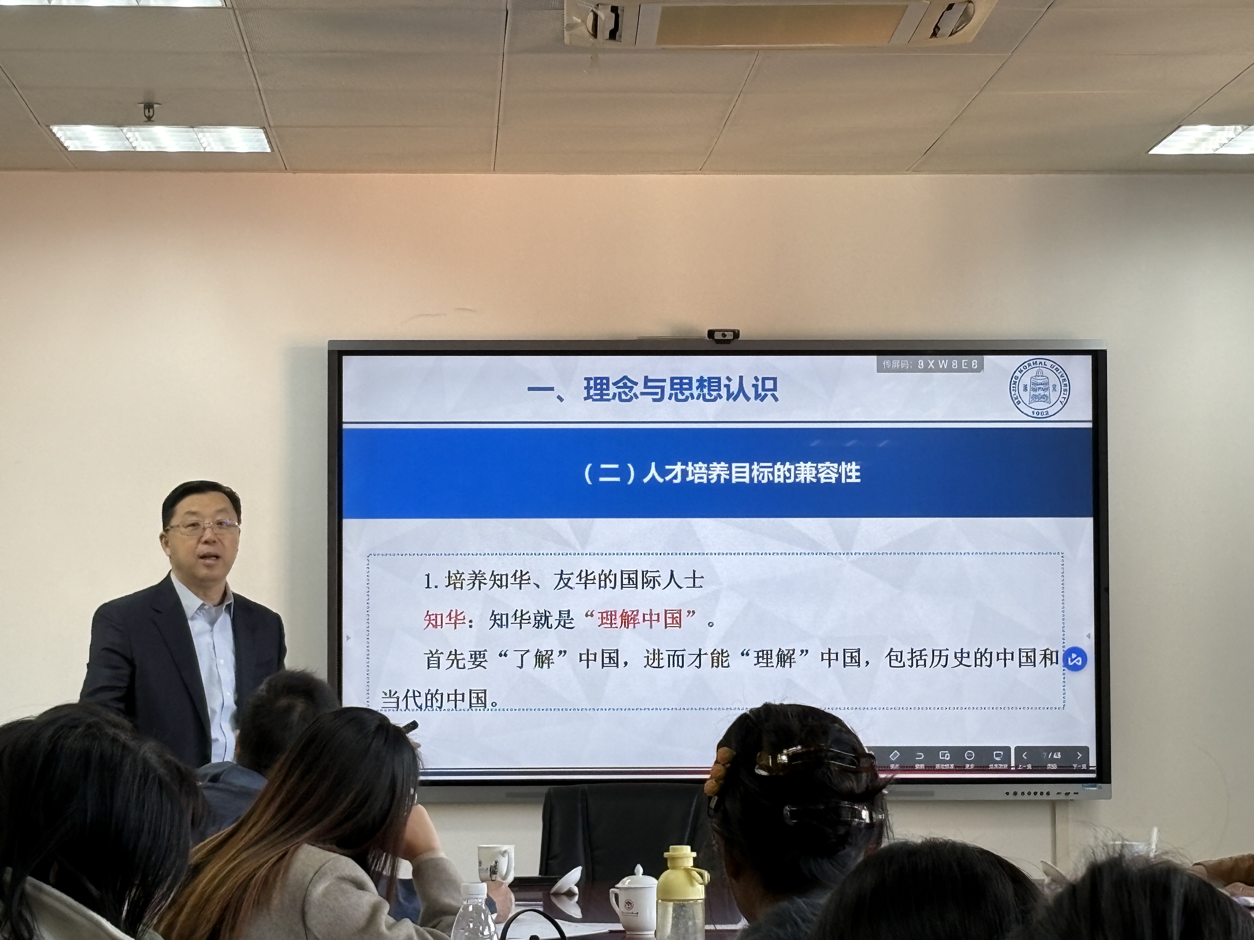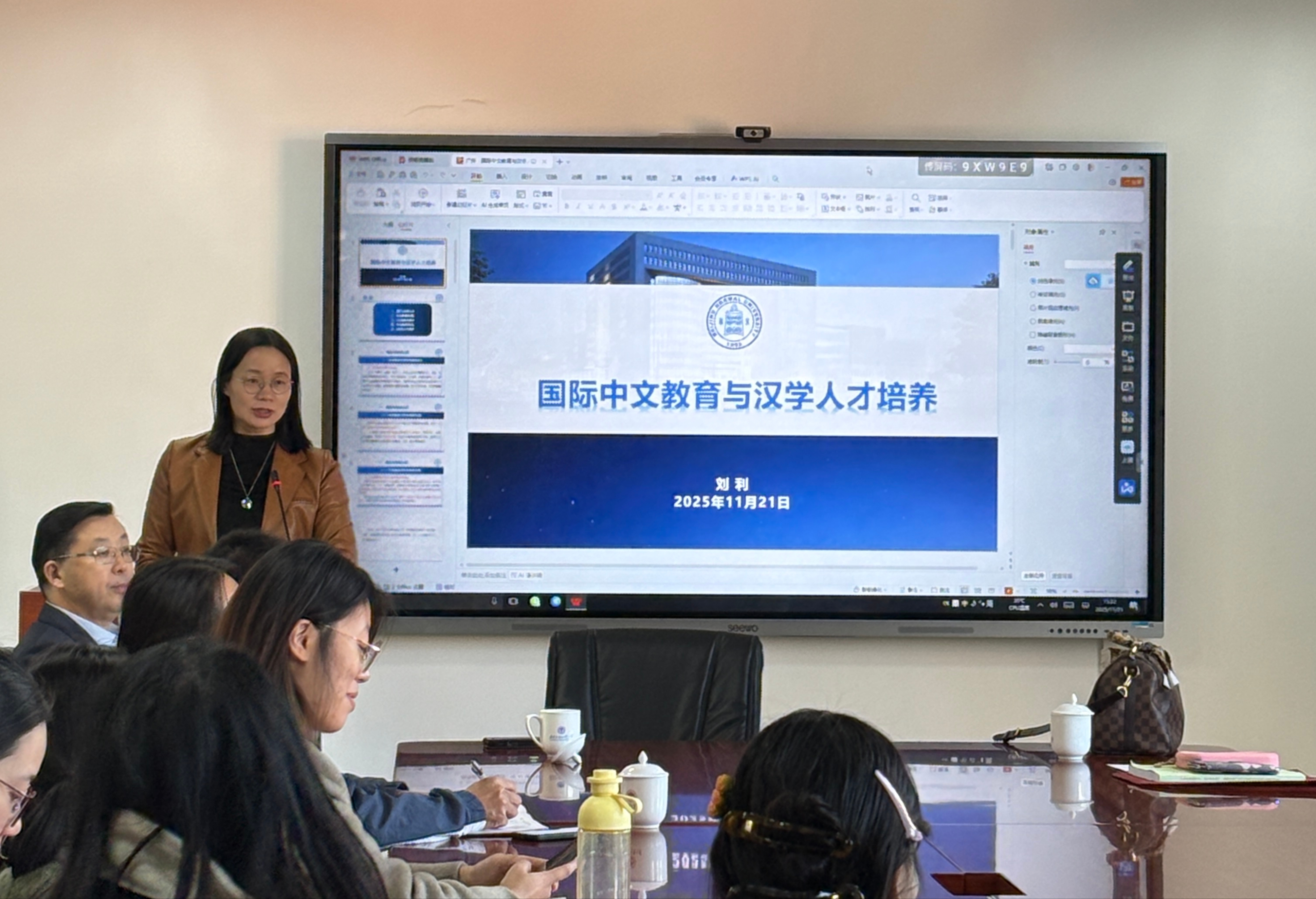 2025年11月21日下午,中国语言文化学院在白云山校区第七教学楼407室举办“国际中文教育与中国学人才培养”专题讲座。本次讲座由副院长于屏方教授主持,特邀北京师范大学刘利教授担任主讲人。汉语国际教育中心主任邱春安教授及2025级国际中文教育硕士研究生出席,共同参与学习交流。